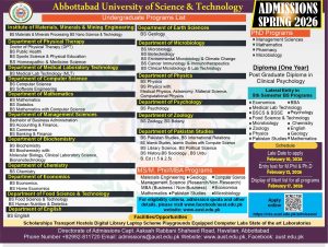 Abbottabad University of Science & Technology aspires to be a leader in innovative research and open to talented students from all backgrounds. Therefore, the university’s mission is to: