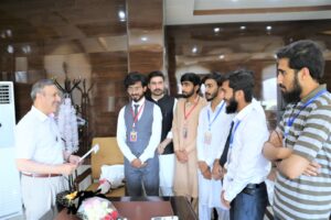 Heads of departments, faculty members, staff, and students of Abbottabad University of Science and Technology (AUST) met with Prof. Dr. Tahir Irfan Khan to congratulate him on his reappointment as Vice Chancellor for the second time. They presented him with floral bouquets in appreciation.