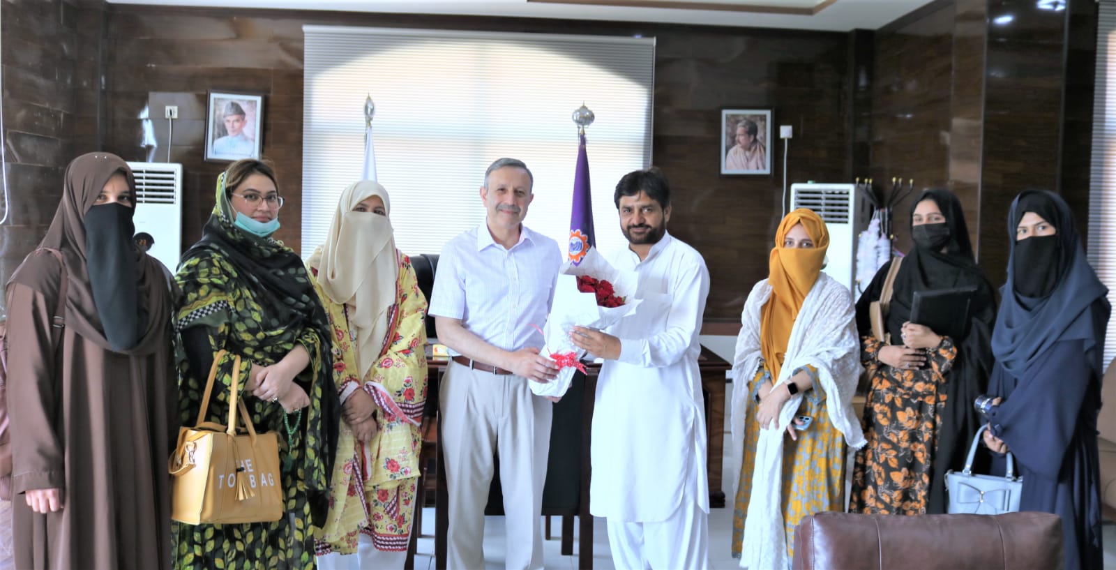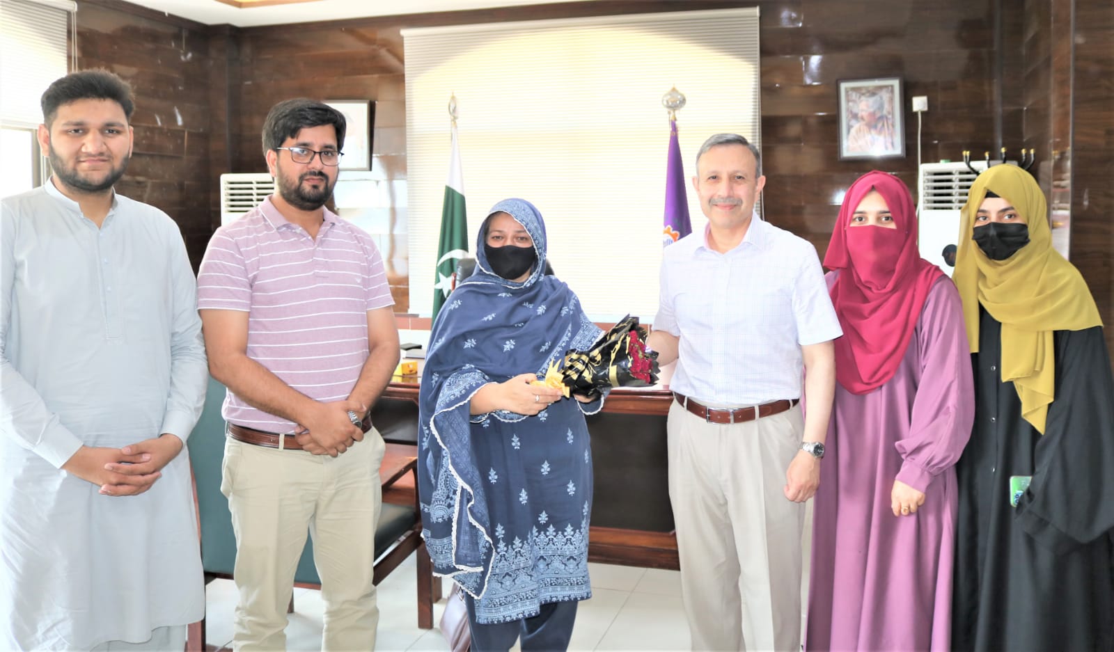 Heads of departments, faculty members, staff, and students of Abbottabad University of Science and Technology (AUST) met with Prof. Dr. Tahir Irfan Khan to congratulate him on his reappointment as Vice Chancellor for the second time. They presented him with floral bouquets in appreciation.