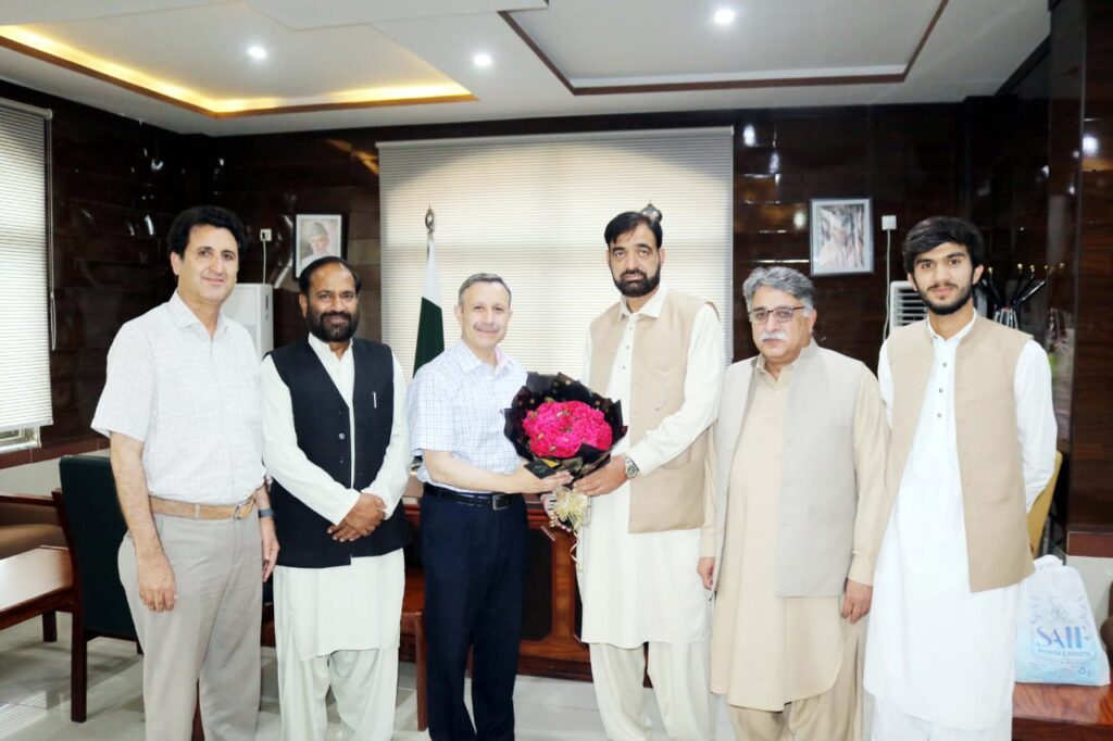 Chief Executive Officer of the Pakistan Institute of Professional Studies (PIPS) and Haripur College of Pharmacy, Mr. Saulat Islam Jadoon, met with Prof. Dr. Tahir Irfan Khan Jadoon, Vice Chancellor of Abbottabad University of Science and Technology (AUST), to extend his heartfelt congratulations on his reappointment as Vice Chancellor for a second term. He was accompanied by Director of Sarhad Group of Colleges, Mr. Nadeem Khan Jadoon. AUST Registrar Mr. Iftikhar Hussain and Director of Administration Mr. Ajmal Khan were also present at the meeting.