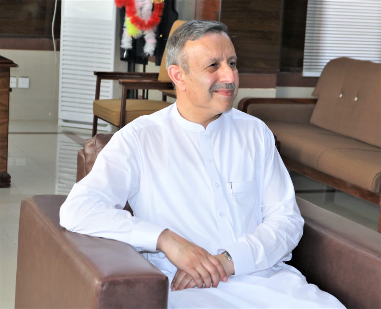 Sheikh Mahmood and Dr. Hasnain Zaki extended their congratulations to Prof. Dr. Tahir Irfan Khan on his reappointment as Vice Chancellor and presented him with a bouquet of flowers.